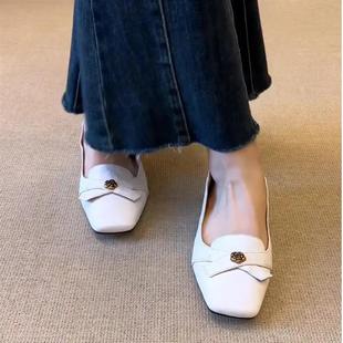 休閑鞋 真皮白色單鞋 子 巨好看軟底芭蕾淺口小皮鞋 新款 女款 2025秋季