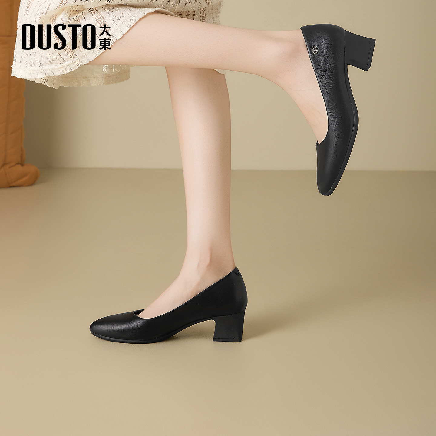 真皮不累腳媽媽上班鞋 子D3S1DAQ5 女2025新款 百麗粗高跟淺口單鞋