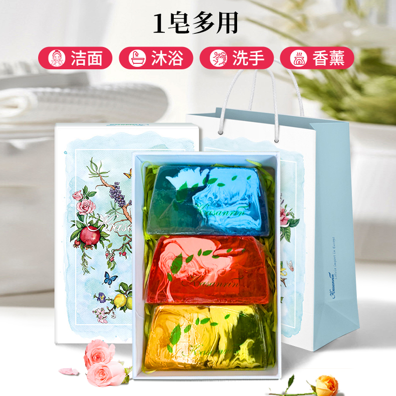卡莎灡300g進(jìn)口手工精油皂禮盒套裝 潔面 伴手禮保濕由