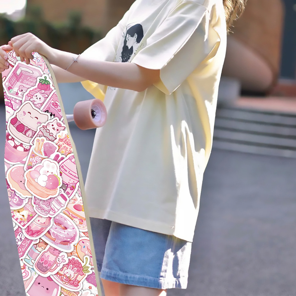 100張粉色卡通零食貼紙 飾小貼畫 可愛少女心DIY手機殼手賬自粘裝由