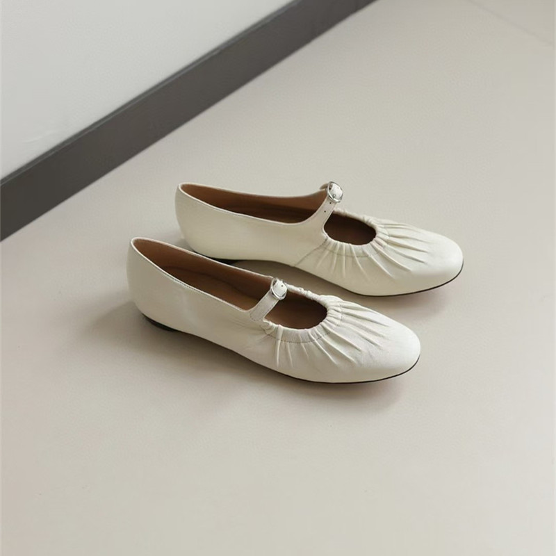 外貿(mào)原單時(shí)尚 女低跟圓頭軟真羊皮舒適秋季 2024新款 瑪麗珍芭蕾舞鞋由