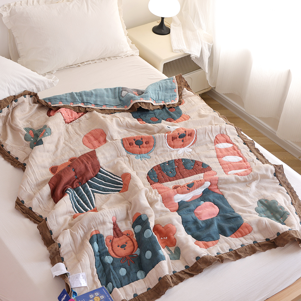 單人毛巾被柔軟舒適透氣兒童家用全棉紗布蓋毯 卡通純棉泡芙被新款由