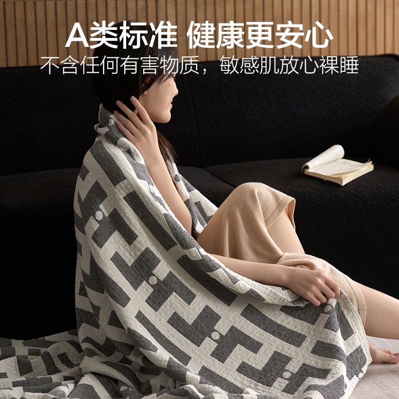 海瀾之家全棉三層紗毯子休閑午休毯沙發毯蓋毯毛巾被空調披肩午睡由
