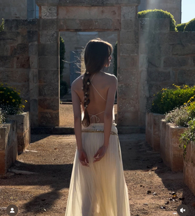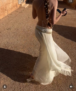 美國購度假多色真絲拼接透視露背綁帶 set 真絲長裙silk由