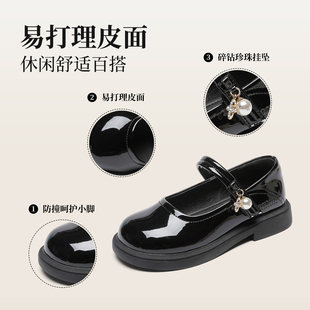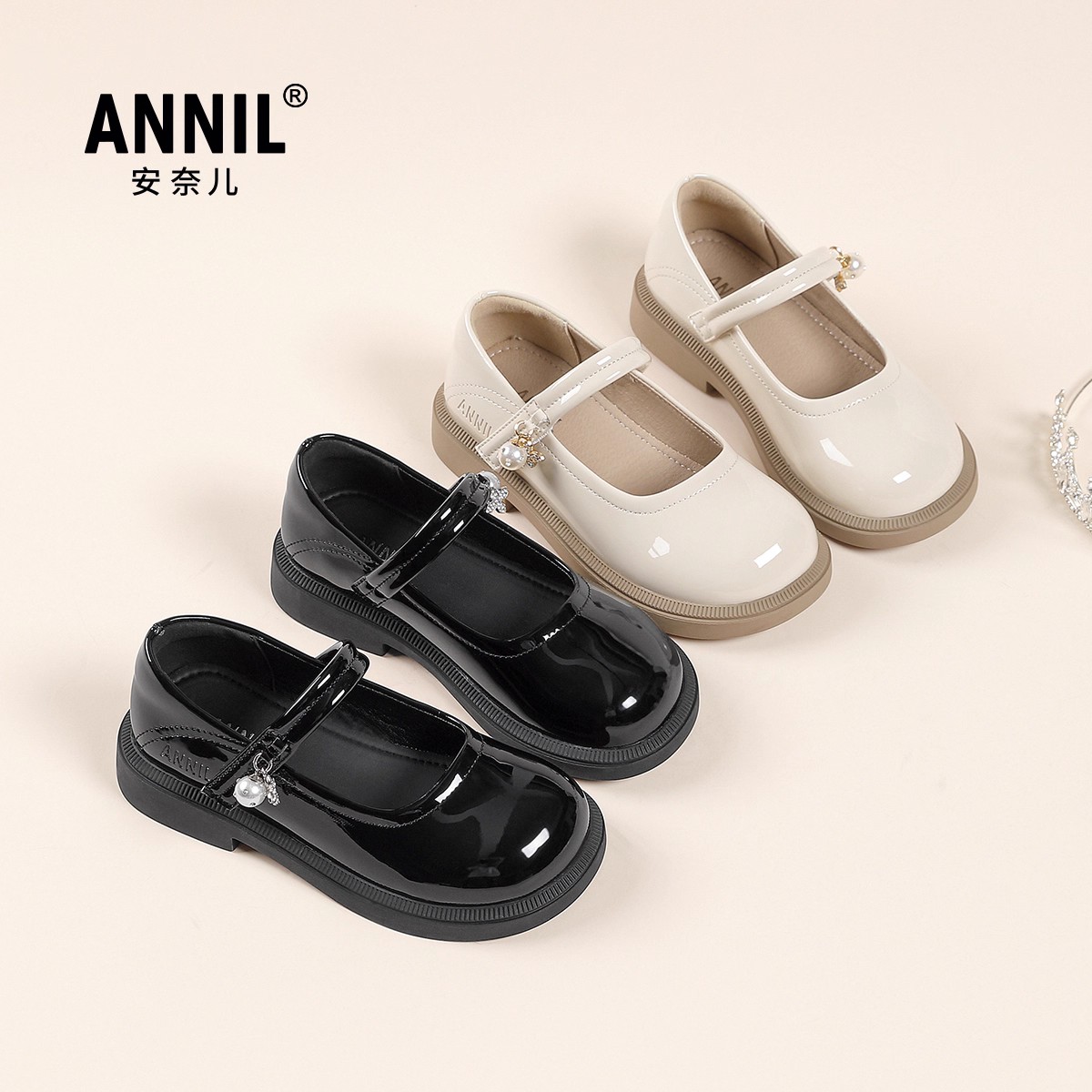 安奈兒女童黑色皮鞋 小女孩公主鞋 軟底兒童瑪麗珍單鞋 亮面春秋新款由