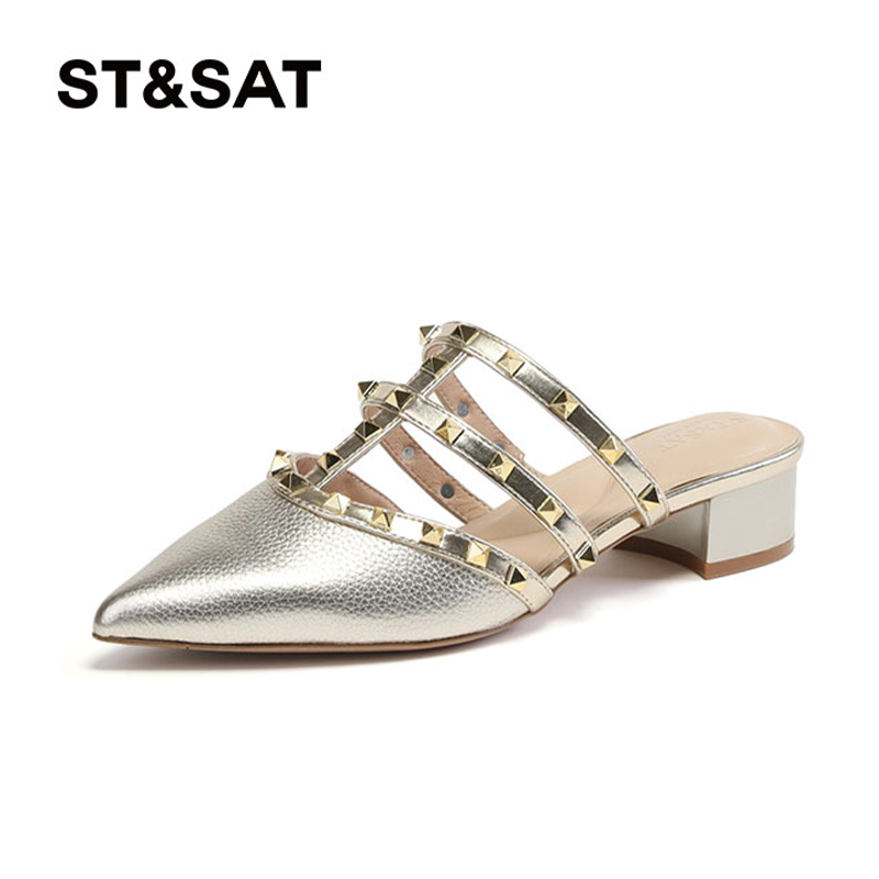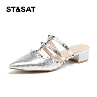 St&Sat 鉚釘穆勒鞋 尖頭粗跟包頭半拖鞋 女SS31114456 星期六夏季由