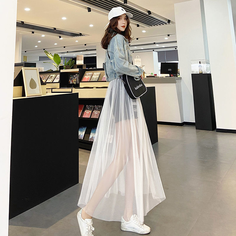 一層紗高腰中長款 單層透視防曬防蚊罩裙 新款 網紗半身裙2025夏季由