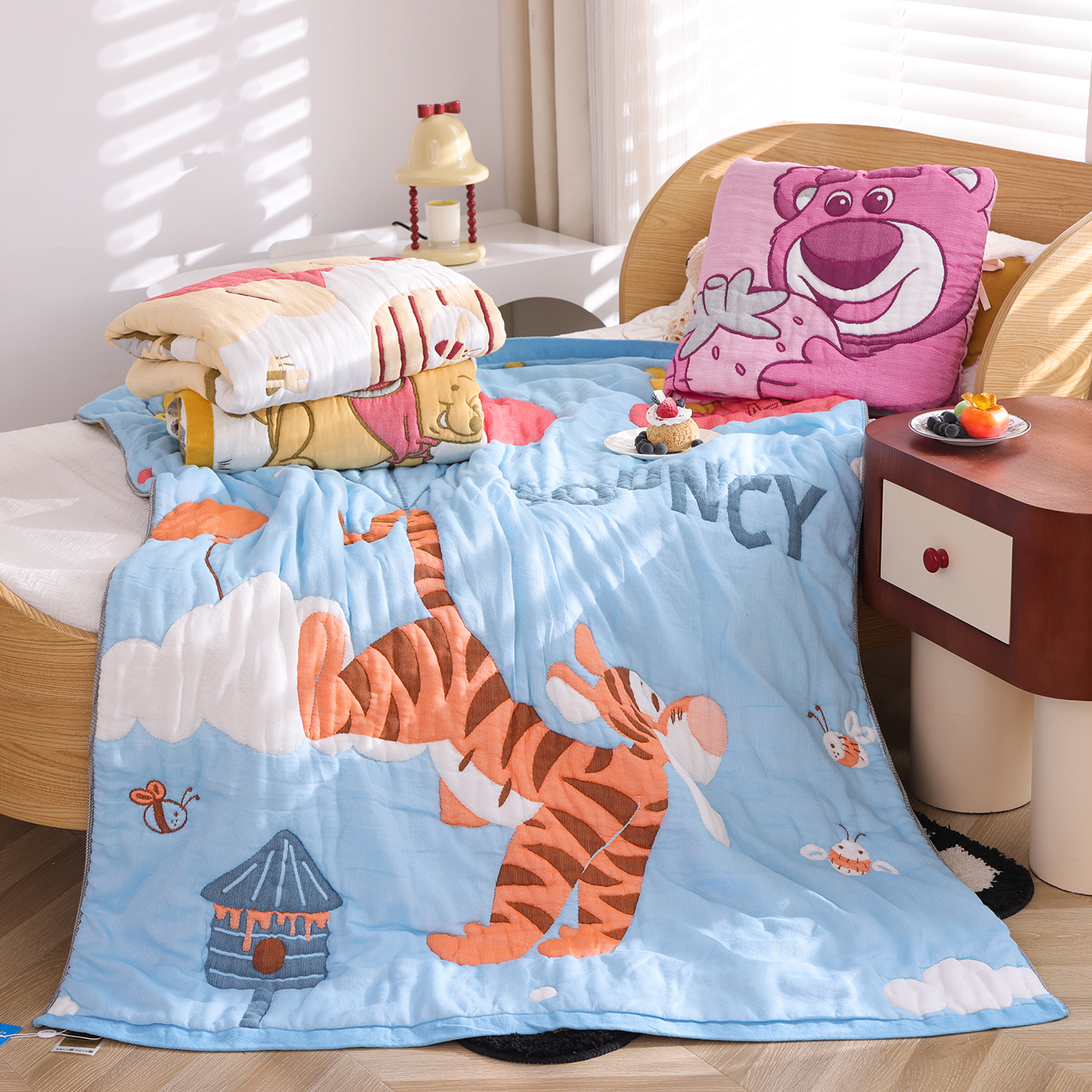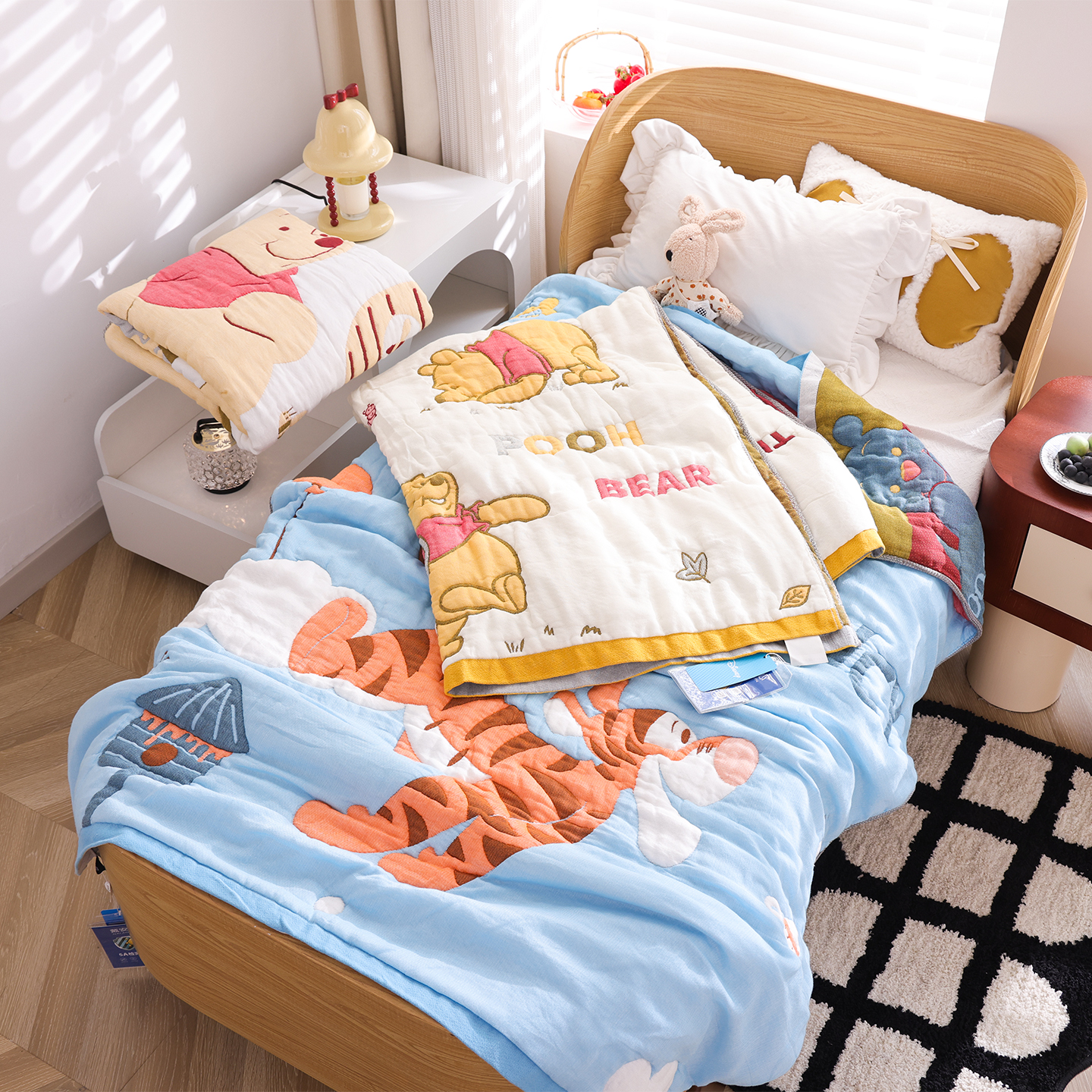 加厚純棉紗布兒童毛巾被蓋毯全棉柔軟幼兒園寶寶面包被卡通午睡毯由