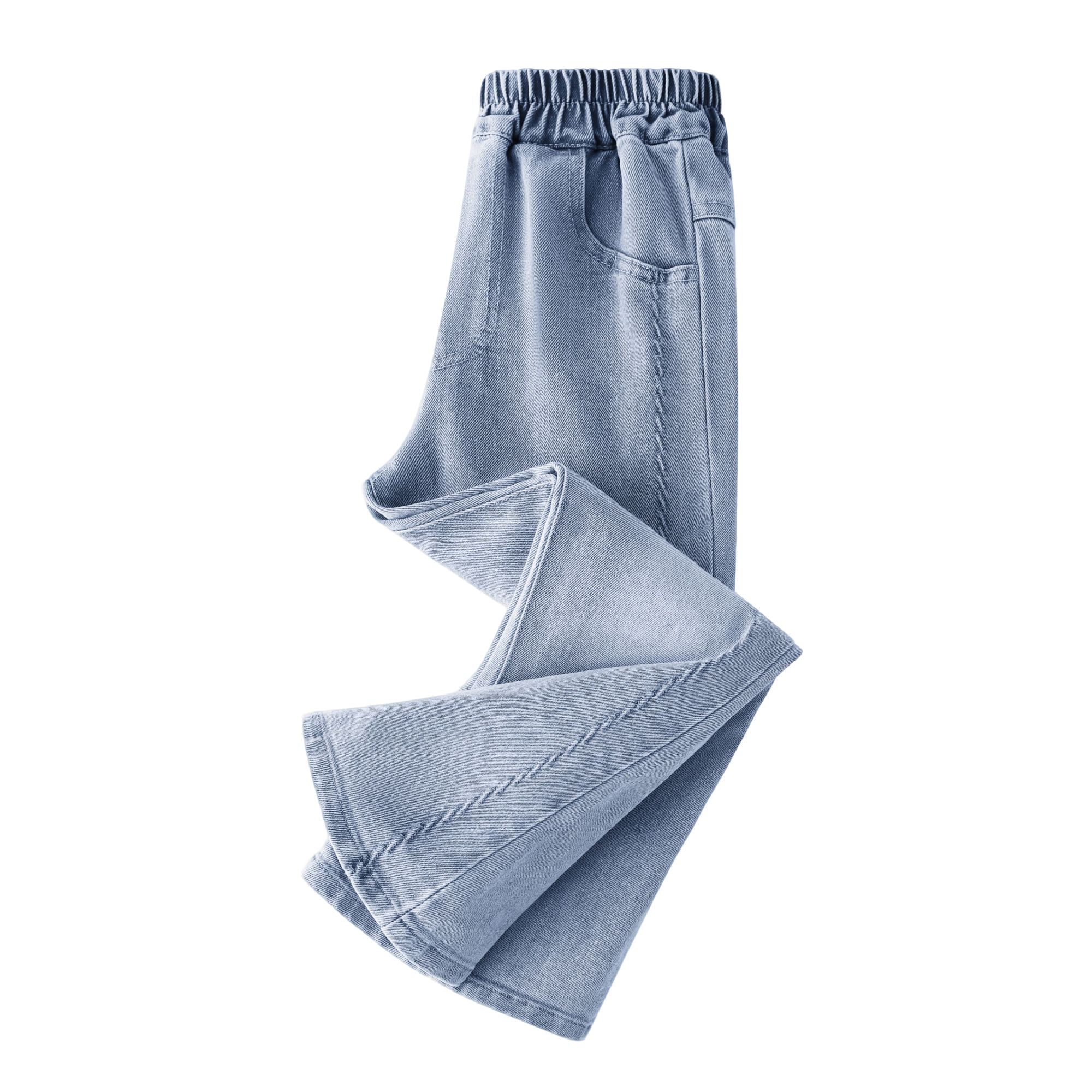 中大童女孩春秋可水洗軟牛仔闊腿喇叭褲 子 2025新款 雅鹿女童牛仔褲由